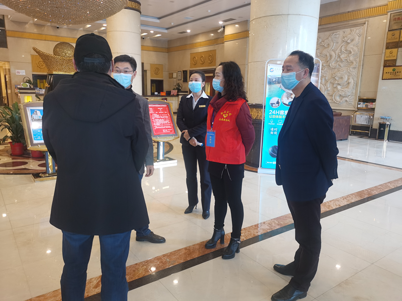 神龍大酒店是衡陽知名四星級酒店。目前,酒店關閉餐飲娛樂部門,僅留客房部繼續(xù)營業(yè)。為確保防疫復工順利開展,弘湘國投選派聯(lián)絡員進駐商業(yè)大廈,專門負責督導神龍大酒店疫情防控工作。陳新驥在與企業(yè)負責人和酒店負責人交談了解情況后,針對酒店人員流動性大、構成復雜的特點,強調(diào):要重點督促酒店進出人員測量體溫、佩戴口罩、衛(wèi)生措施、員工食堂分餐、員工宿舍衛(wèi)生和日常消毒情況。聯(lián)絡員要每日報告商業(yè)大廈復工復產(chǎn)企業(yè)和防疫工作情況,要有紀律,要勇于擔當,為企業(yè)辦實事,解難事。我們既要打贏疫情防控戰(zhàn),也要幫助保護好衡陽本地知名企業(yè)。