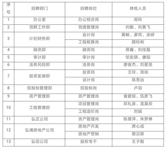 衡陽弘湘國(guó)有投資(控股)集團(tuán)有限公司2020年公開招聘員工體檢事項(xiàng)公告