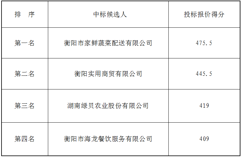 衡陽市衡府賓館有限公司(養(yǎng)正園)食堂食材(蔬菜類)公開比選候選人公示