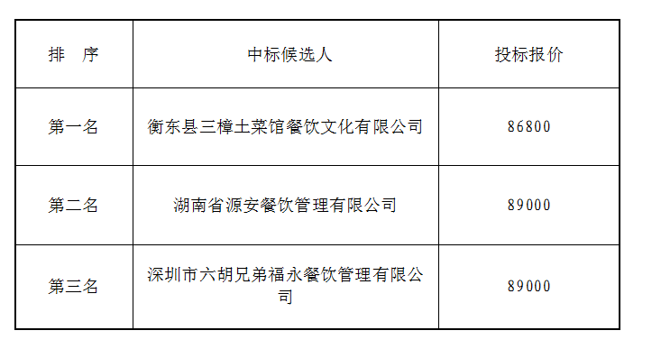 衡陽市衡府賓館有限公司(養(yǎng)正園)食堂勞務(wù)公開比選候選人公示