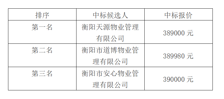 衡拖棚戶區(qū)改造(一期)安置小區(qū)前期物業(yè)管理公司中標候選人公示