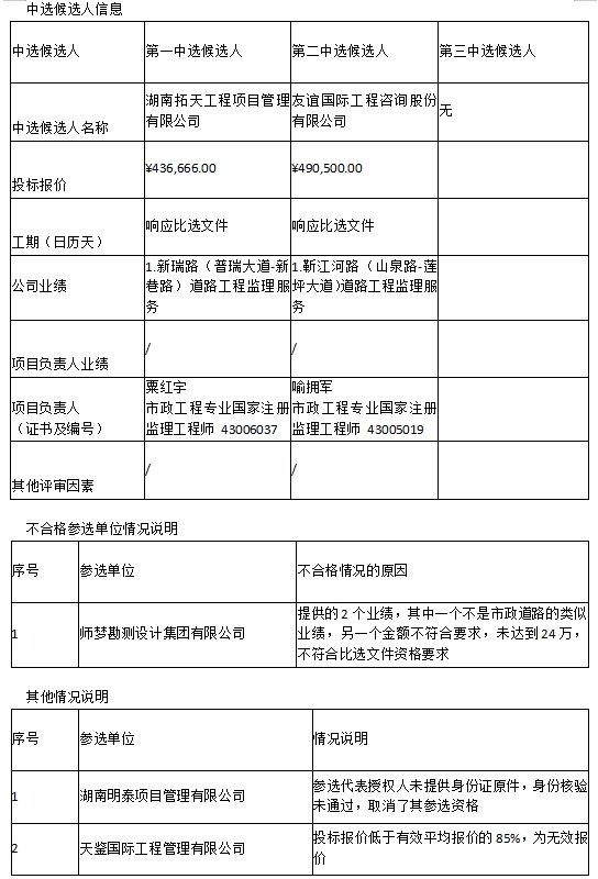衡陽(yáng)市雁城東路(東方里街-東二環(huán))及雁城東路與建湘連接線新建工程監(jiān)理服務(wù)內(nèi)部比選中選候選人公示